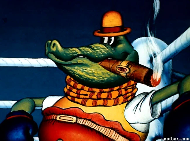 Крокодил - один из подручных Бармалея. После того, как злодеи захватили власть в Африке, взяв в плен всех детей-животных, добрый доктор Айболит со своими помощниками отправился их спасать. Бармалей, чтобы сбить доктора с пути, приказал Крокодилу проглотить солнце. Доктор Айболит всё же добирается до Африки и лечит всех детей. И прибежали они все к медведю, просить его победить Крокодила. Уговорить медведя удалось и он пошёл разбираться с Крокодилом. Медведь подошёл и приказал ему выплюнуть солнце, иначе пожалеет. Крокодил лишь усмехнулся. Далее злодей вступает в битву с медведеем, но последний без всякого труда победил его, после чего солнце вышло из Крокодила. Позже Айболит попросил искалеченного Крокодила проглотить Бармалея. Крокодил рассмеялся и проглотил Бармалея. Бармалей раскаялся, после чего Крокодил его выпустил.
