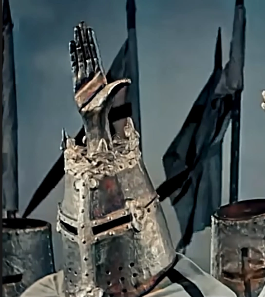 - Из-за ошибок монтажа можно заметить живого Дитлиба уже после его смерти, например, стоящим рядом с Губертусом и наблюдающим за тем, как крестоносцы создают стену щитов.