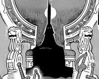Неожиданно в зал входит Иму и занимает Пустой Трон, который, согласно клятве Двадцати королей-основателей, никто не имеет права занимать. Иму соглашается дать Нефертари некоторые разъяснения, касающиеся инициалов Д. и их значения. В ответ на это Иму хочет услышать полное имя королевы Лили. Когда Иму узнает, что члены семьи Нефертари носят инициалы Д. в своем имени, он мгновенно атакует Кобру и ранит его. Хотя на помощь приходит Сабо, его силы недостаточно, чтобы противостоять Иму и Горосеям, которые используют силу дьявольских плодов и принимают облик мифических чудовищ. Иму легко уничтожает огонь Сабо и начинает преследовать его и раненого Кобру. В конце концов Иму удается убить Кобру и с помощью фотокамеры Ден Ден Муши подставить Сабо, сделав вид, что это он убил его.