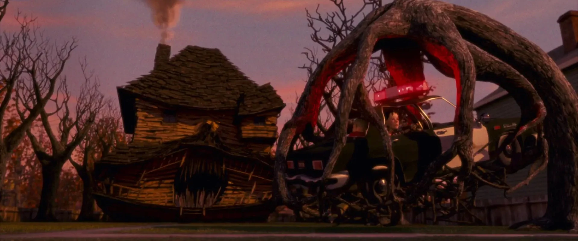Однако полицейские были не единственной целью: дом при содействии деревьев хватает полицейскую машину и поглощает её вместе с детьми, находящимися внутри, словно бургер. Детям удаётся выпрыгнуть из машины, чтобы избежать съедения, и пытаются сбежать, но в итоге они оказываются в ловушке внутри дома, становясь свидетелями того, как интерьер дома возвращается в нормальное состояние.