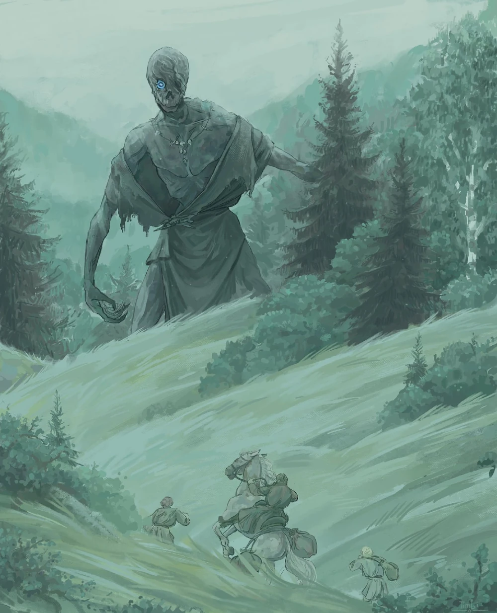 - Разлад семьи - Семья торговцев потеряла кормильца. Лихо убило его напрямую, но направило его в путь, где произошло несчастье: сломалась телега, слуга ошибся с картой, и мужчина погиб в лесу. После этого жена и дети оказались в нищете, вынуждены были разойтись, потеряв дом. Затем Лихо поочередно съел каждого родственника.