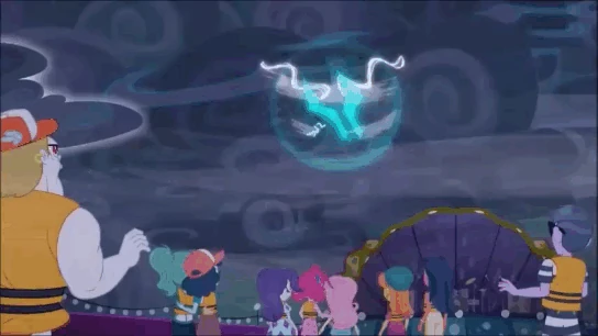 Почувствовав присутствие Эквестрийской Магии, он решает действовать, заманивая на остров Радугу Дэш, одержимую поиском «Злой Магии». Зная, что Сансет Шиммер и Научно-Искорка обязательно пойдут за ней, он сделал предварительный заказ Хищноцвету-Титану, чтобы тот избавился от них, как только они найдут Рэйнбоу Дэш. И хотя девушки смогли спастись от союзника Шторма, воспользовавшись порталом в Эквестрию, сам Шторм был крайне разочарован неспособностью Хищноцвета-Титана выполнить задание, и, видимо, убил его. Пока Радуга Дэш, Сансет Шиммер и Научно-Искорка находились в Эквестрии, Шторм начала садистски издеваться над и без того перепуганными пассажирами корабля, на котором находились и остальные Хранители Дружбы, а также всячески старалась поразить любого из них молнией. В результате он лишает пассажиров единственного шанса спастись, уничтожая лодки. В попытке нанести им всем смертельный удар, он снова поглощается Посохом Саканасом, который был принесен в мир людей вернувшимися Радуга Дэш, Сансет Шиммер и Научно-Искорка.